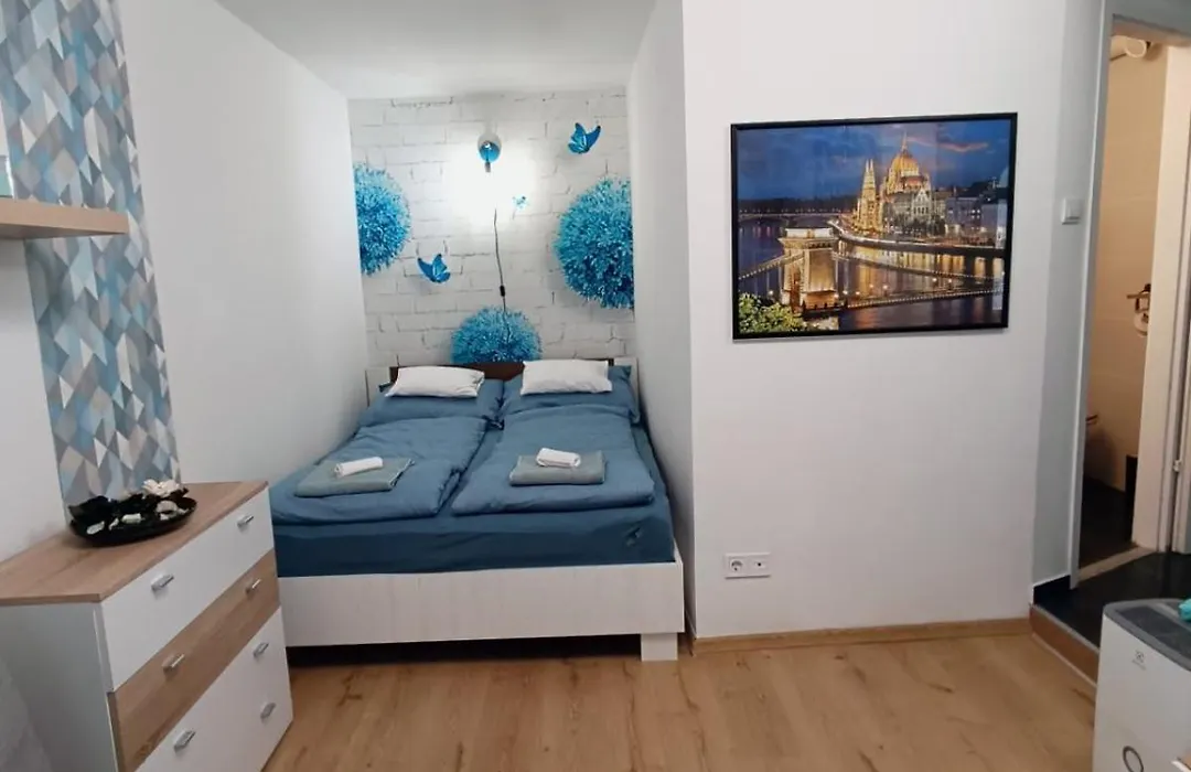 Apartament jest usytuowany w dzielnicy 08. Józsefváros, 25 km od lotniska Budapeszt im. Ferenca Liszta. Najbliższy przystanek autobusowy Harminckettesek tere oddalony jest od obiektu o 150 metrów, a Wielka Hala Targowa - w odległości 20 min spacerem. 2 km od 1-pokojowego Skyblue Apartment znajduje się również Bazylika św. Stefana.